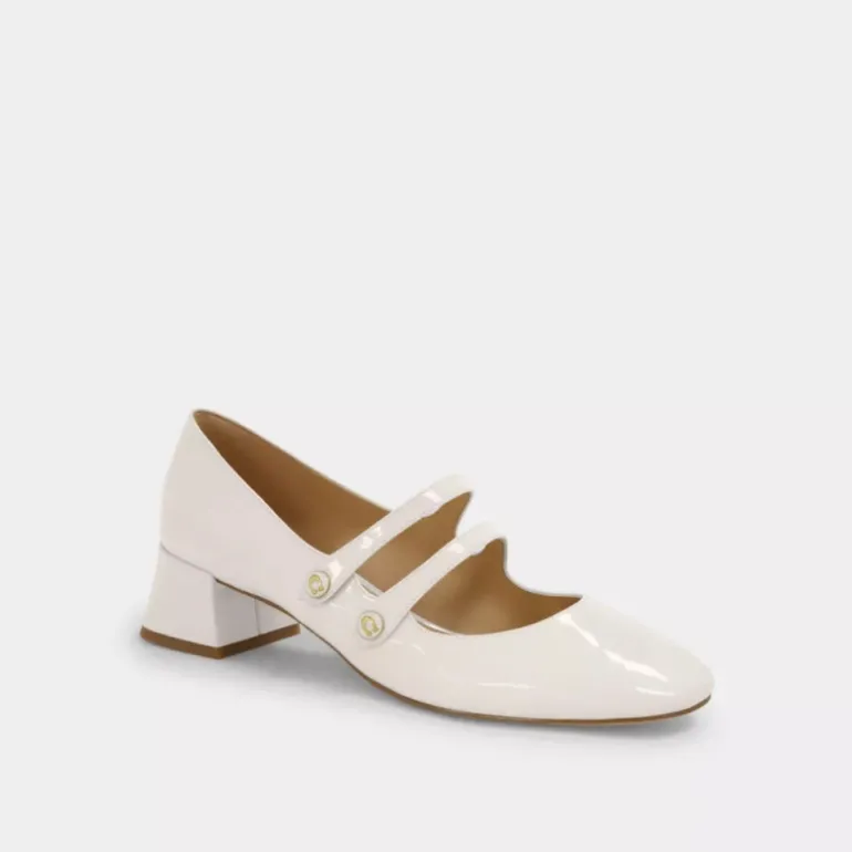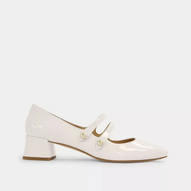 Der Mary Jane aus hochglänzendem Lackleder verfügt über zwei Riemen und eine klassische Silhouette, die perfekt fürs Büro und am Wochenende geeignet ist. Der Angelina ist mit Emaille-Knöpfen ausgestattet, die mit unserer Signature verziert sind. Der Blockabsatz sorgt für ein bisschen mehr Höhe und die Gummilaufsohle für gute Traktion.