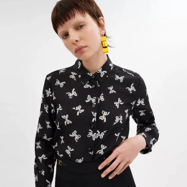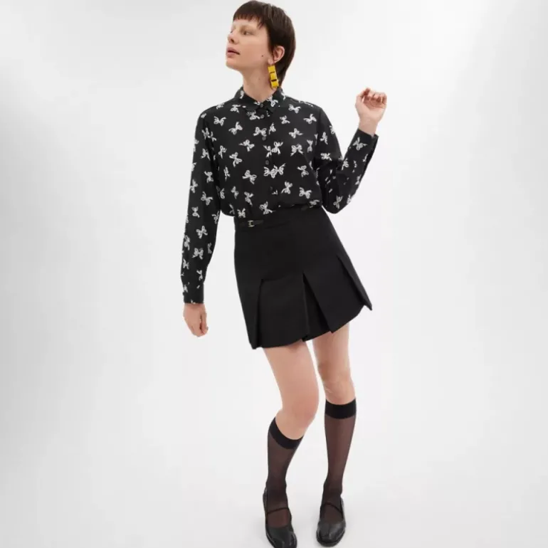 Diese klassisch geschnittene Seidenbluse mit traditionellem Spitzkragen und niedlichem Schleifenmotiv gehört in jede Garderobe. Das luftige Modell verfügt über Signature-Knöpfe für einen dezenten Hauch von Tradition.