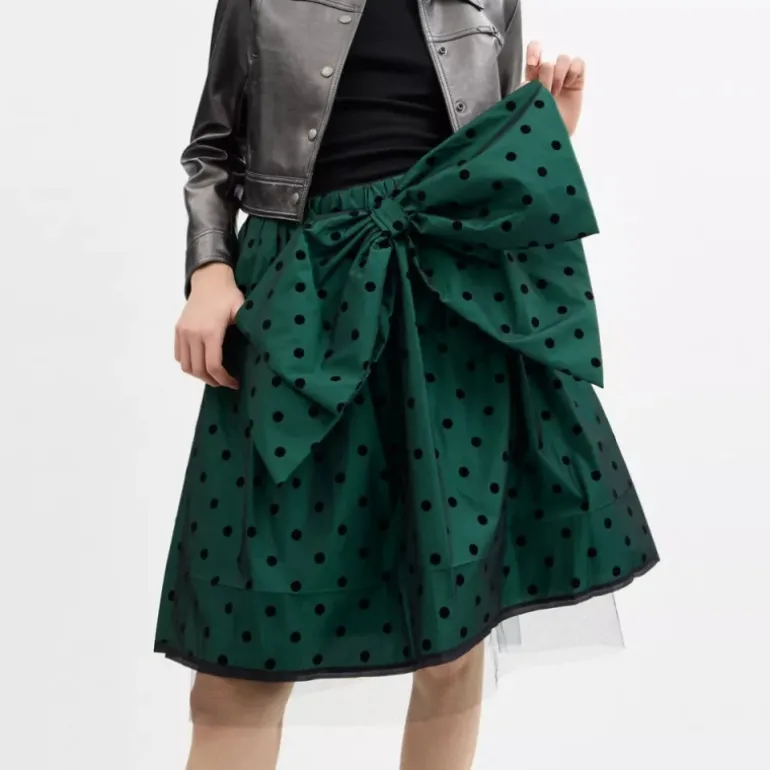 Dieser Rock aus Taft mit beflockten Punkten ist eine moderne Version von Vintage-Party-Styles. Er überzeugt mit einer übergroßen Schleife und einem Saum aus Tüll. Abgerundet wird die verspielte, voluminöse Silhouette von einem Reißverschluss hinten.