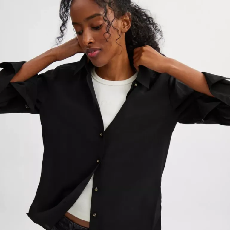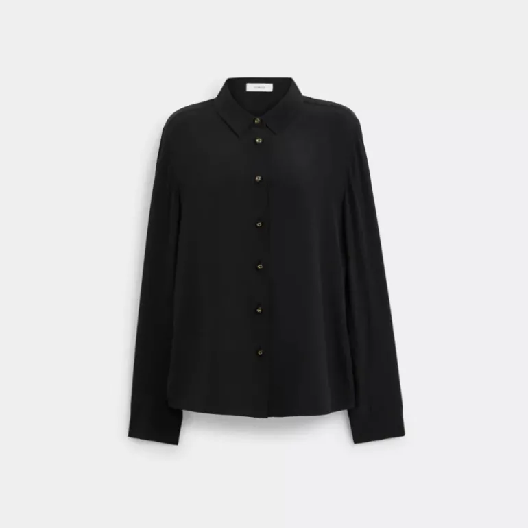 Diese klassisch geschnittene Seidenbluse mit traditionellem Spitzkragen gehört in jede Garderobe. Das luftige Modell verfügt über Signature-Knöpfe für einen dezenten Hauch von Tradition.
