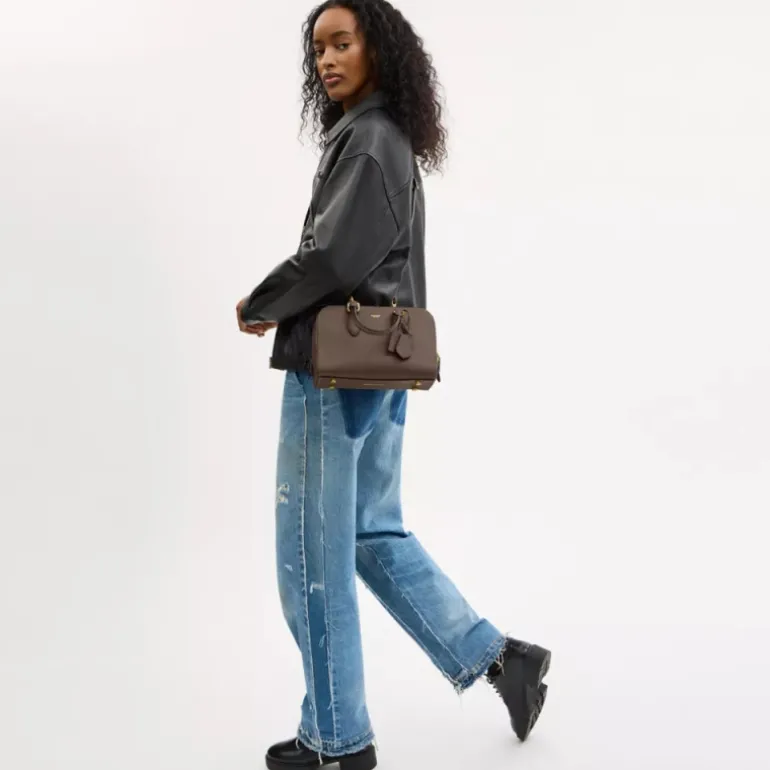 Superweiches Leder Einschubtasche innen Reißverschluss, Textilfutter Griffe mit 7,6 cm Tragelänge Abnehmbarer Riemen…