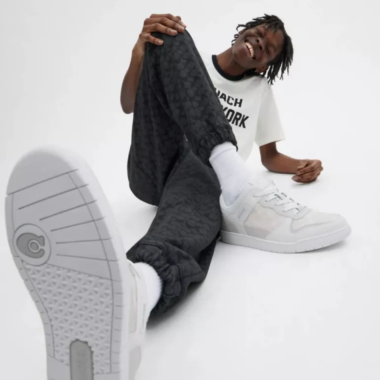 Dieser C201 Lowtop-Sneaker aus unserem Signature-Canvas und glattem Leder ist von traditionellen Pumps inspiriert und sorgt für Komfort und Langlebigkeit. Das sportliche Modell verfügt über eine gerillte Sohle für hervorragende Traktion.