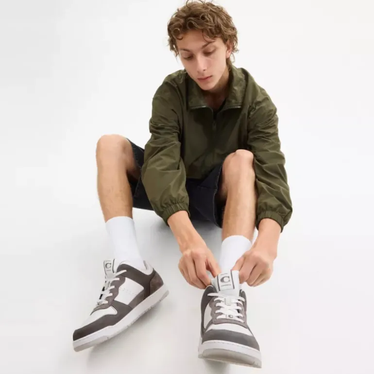 Unser C201-Sneaker aus einem Mix aus samtigen Wildleder und glattem Leder erinnert an traditionelle Pumps. Dieser vielseitige Low-Top-Schuh hat eine geriffelte Sohle für gute Traktion.
