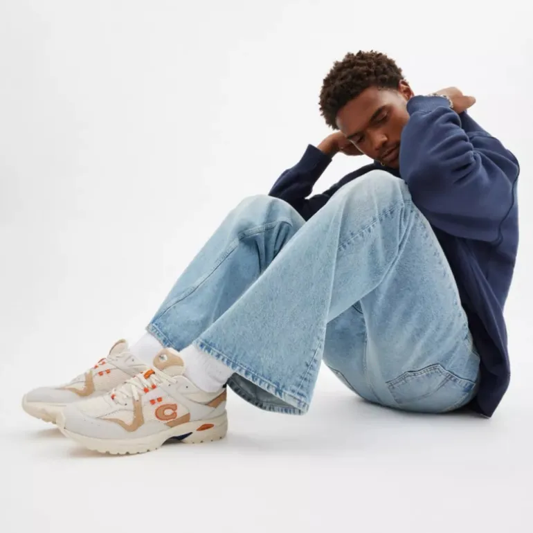 Unser sportlicher C301 Sneaker aus einem Mix aus Wildleder, Leder und Mesh erinnert mit seinem eleganten Stil an klassische Laufschuhe. Der Schnürschuh ist mit unserem Namen an der Ferse und unserer Signature an der Seite verziert und verfügt über eine leichte EVA-Sohle für ganztägigen Komfort und gute Traktion.