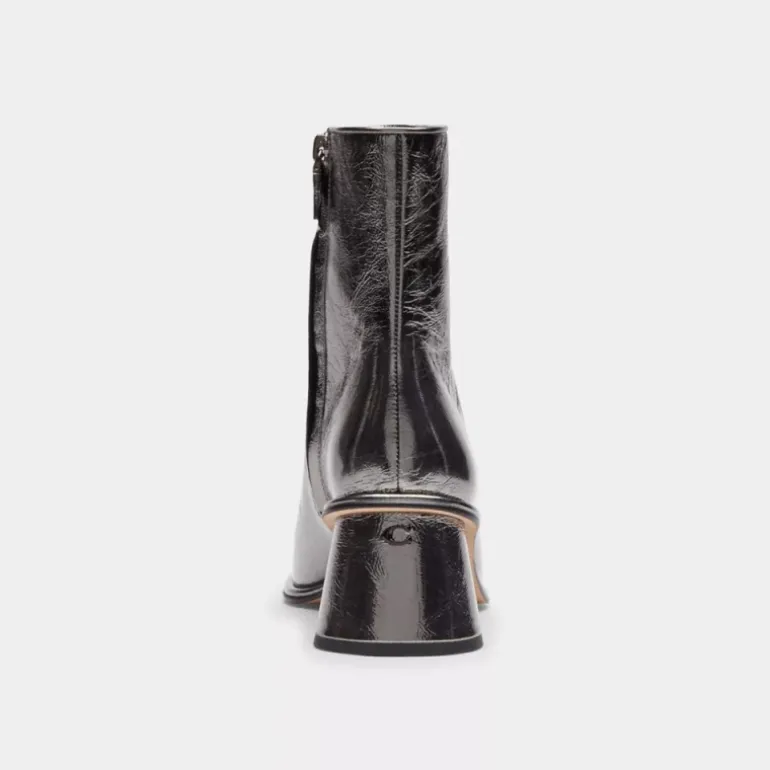 Unsere Gigi Stiefelette mit bequemem Blockabsatz und polierten Metalldetails ist ein elegantes, modernes Modell für den Alltag. Sie wurde aus sanft strukturiertem, metallisch glänzendem Leder gefertigt. Den Abschluss bilden ein Reißverschluss an der Seite und ein gepolstertes Fußbett für zusätzlichen Komfort.
