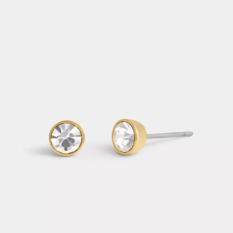 Diese zierlichen Ohrringe sind mit einem in der Mitte sitzenden, eingefassten Kristall verziert. Der Hintergrund der Ohrringe kann entfernt und die Kristallstecker allein getragen werden.
