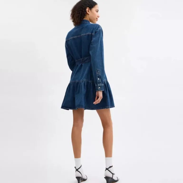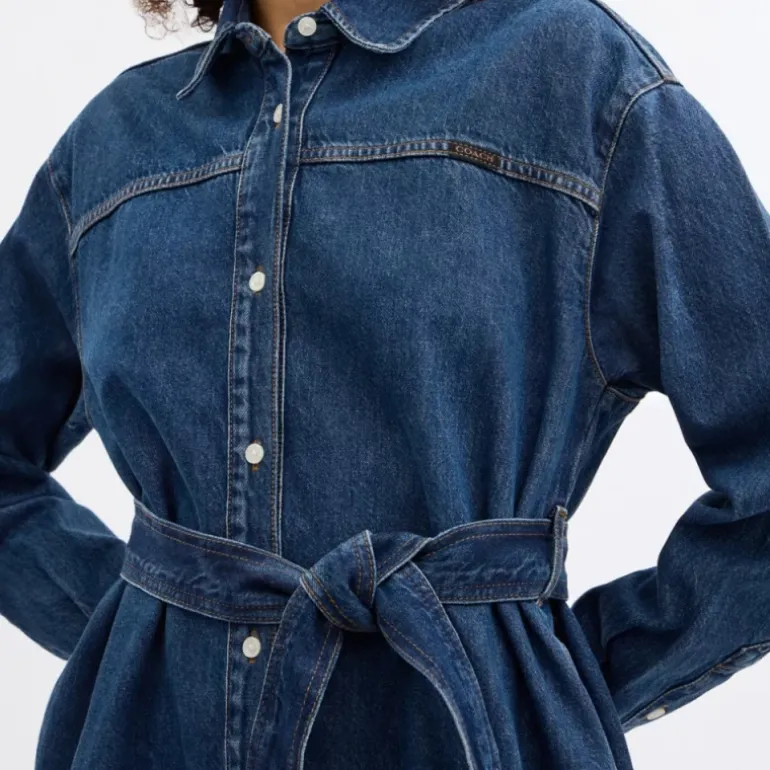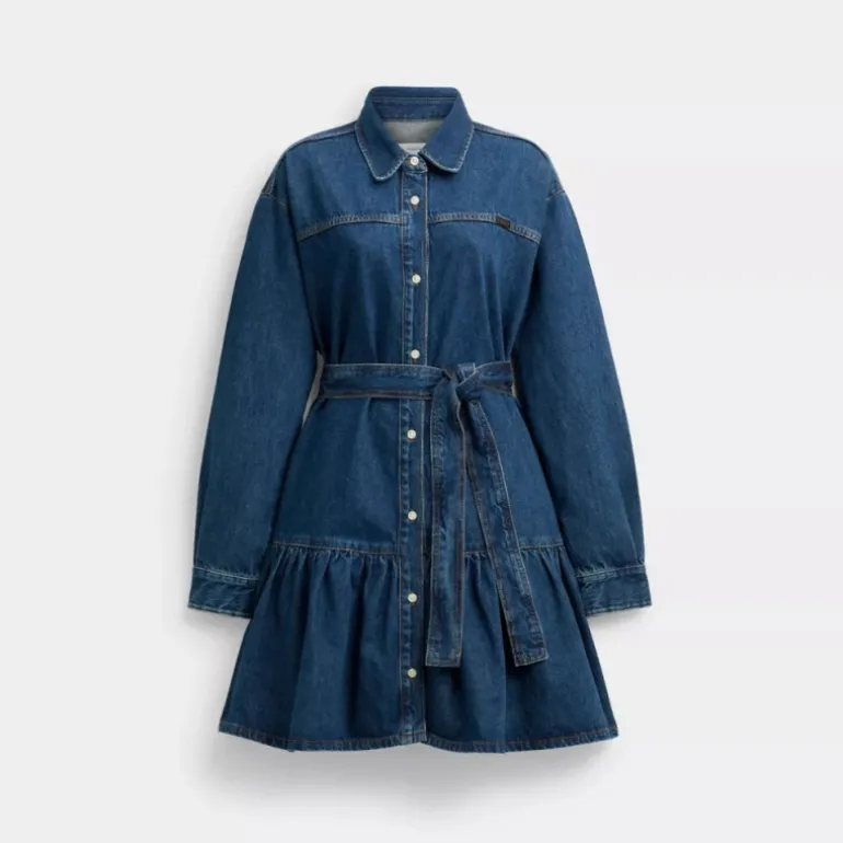 Dieses Hemdkleid aus Denim ist die feminine Variante eines eleganten Styles. Sein gerüschter Saum sorgt für spielerische Bewegung und Volumen. Abgerundet wird die Silhouette aus Baumwolle mit unserer Coach-Flagge für einen dezenten Hauch von Tradition.