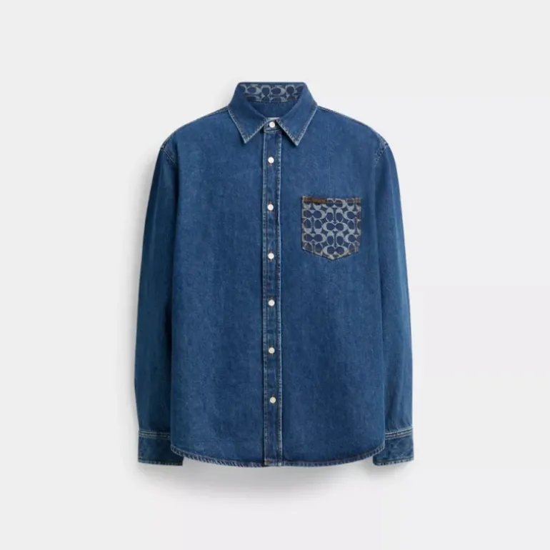 Dieses klassisch geschnittene Shirt aus Baumwoll-Denim basiert auf traditionellen Workwear-Styles und lässt sich zu einfach allem tragen. Für einen traditionellen Touch ist es mit einer Signature-Brusttasche und unserer Coach-Flagge abgerundet.