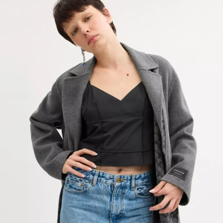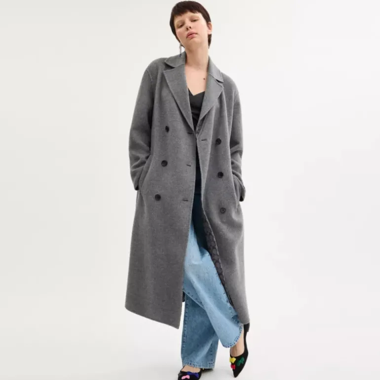 Der Mantel im Trenchcoat-Stil sorgt bei kühlerem Wetter für einen eleganten Look. Er besteht aus einer doppelseitigen Wollmischung mit schönem Fall und glatter, gleichmäßiger Oberfläche auf beiden Seiten. Die zweireihige Silhouette mit steigendem Revers, Taillengürtel und Einschubtaschen wird durch einen Schlitz auf der Rückseite für zusätzliche Bewegungsfreiheit und unser elegantes Coach-Label am Ärmel abgerundet.