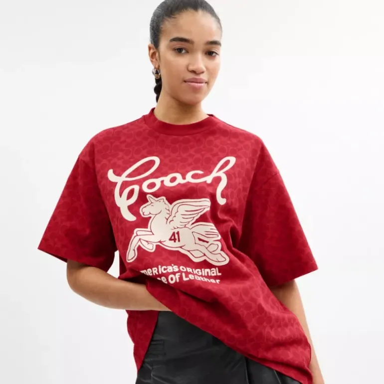 Lockeres Signature-T-Shirt aus Biobaumwolle mit Pegasus-Motiv*COACH New