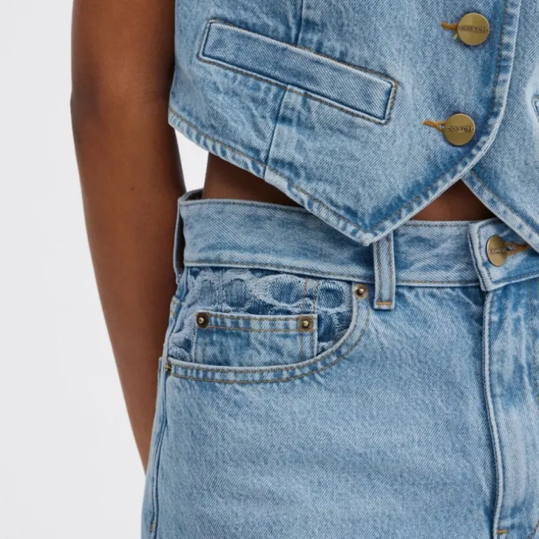 Die Jeans bringt mit ihrer entspannten Passform und dem klassischen 5-Pocket-Design die Silhouette der 90er-Jahre zurück. Die Baumwoll-Denim-Hose ist mit unserer Signature an der Tasche und am Bund versehen und wird durch einen Lederaufnäher und unser Coach-Fähnchen auf der Rückseite abgerundet, die ihr einen gewissen Heritage-Touch verleihen.
