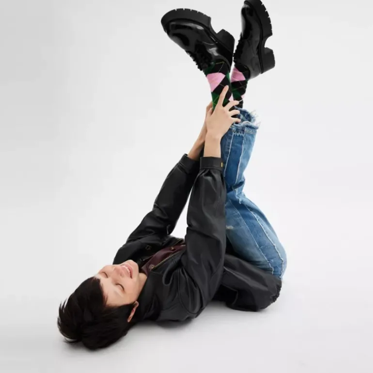 Unser Lyla Derby aus hochglänzendem Glattleder ist eine moderne Interpretation der klassischen Oxford-Silhouette. Er verfügt über eine massive, von den 90er-Jahren inspirierte Stollensohle, die für etwas mehr Höhe und hervorragenden Grip sorgt. Die Schnür-Silhouette ist mit einem komfortablen, gepolsterten Fußbett für ganztägigen Tragekomfort ausgestattet.