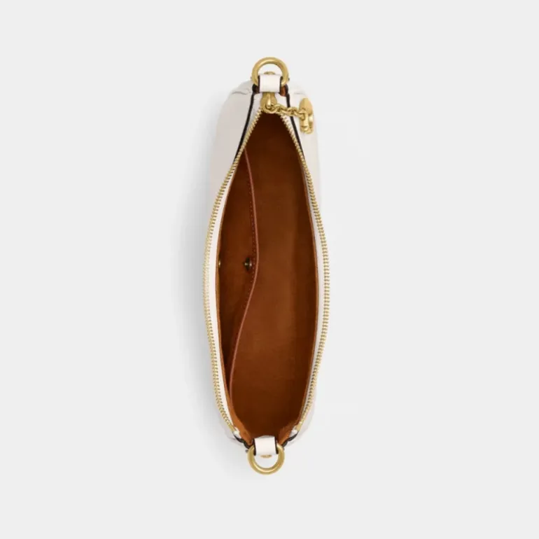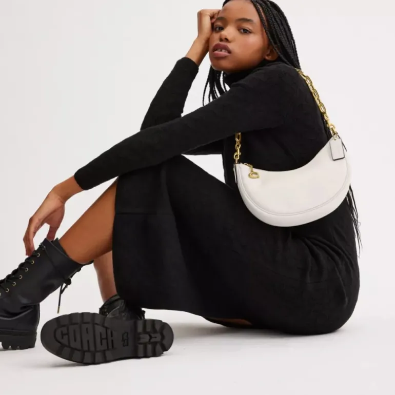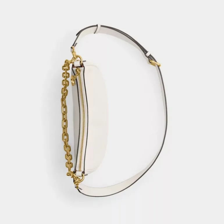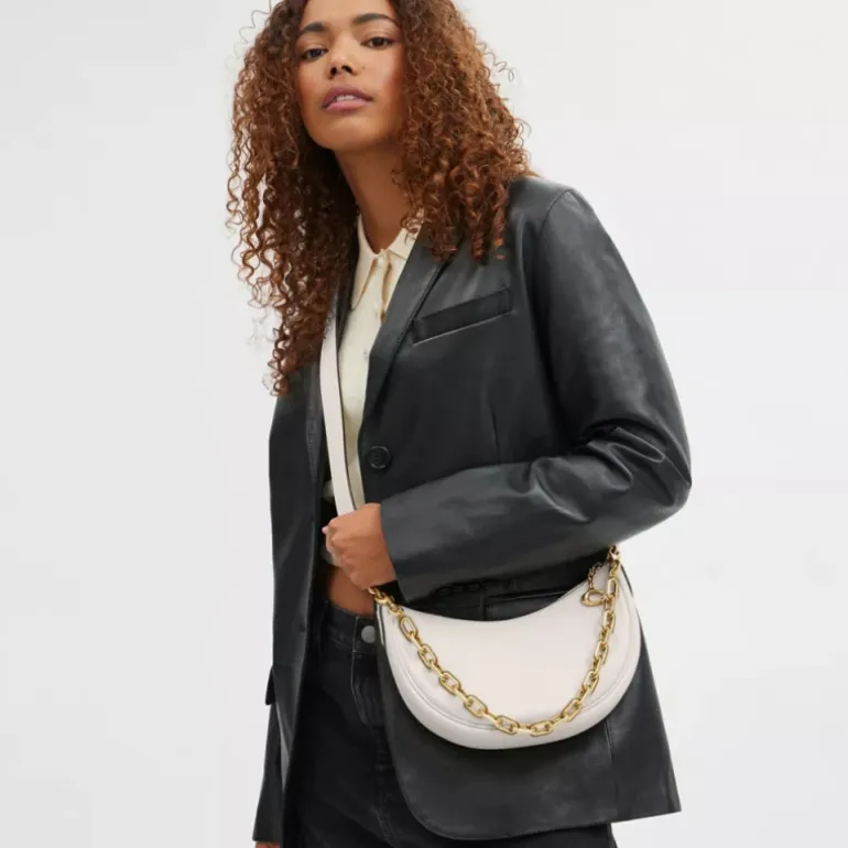 Unsere weiche und geräumige, halbmondförmige Mira ist ihrer Zeit voraus. Das vielseitige Modell aus superweichem Leder ist mit einem sicheren Reißverschluss mit C-Metalldetails ausgestattet. Es verfügt über einen massiven Schulterriemen aus Kettengliedern und einen abnehmbaren Lederriemen für das Tragen als Umhängetasche. (So viele Möglichkeiten!)