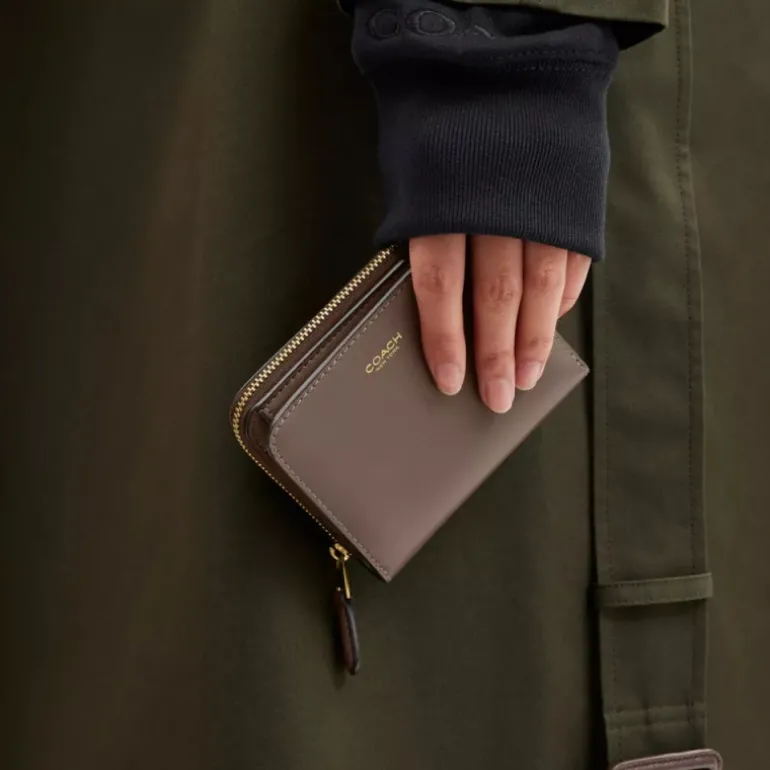 Dieses kompakte Portemonnaie aus edlem Leder mit unseren Signature-Metalldetails verfügt über ein praktisches Außenfach mit Reißverschluss für Münzen, Quittungen, Kopfhörer und andere Notwendigkeiten des Alltags. Beim Öffnen enthüllt es acht Kartenfächer und ein Geldscheinfach mit voller Länge.