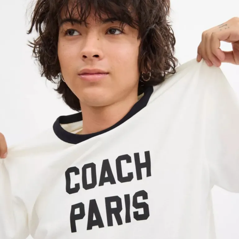 Das leichte Baumwoll-T-Shirt ist mit unserer Coach-Paris-Grafik bedruckt und mit einem Kontrastkragen versehen.
