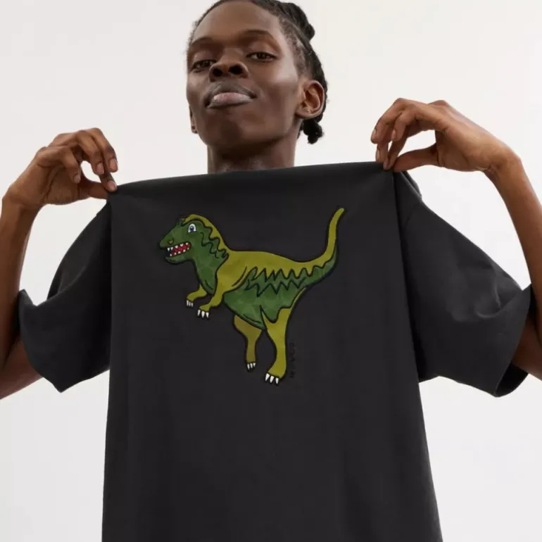 Das lebenslustige Coach Maskottchen Rexy ist vorne und in der Mitte auf diesem weichen T-Shirt zu sehen. Es ist aus Biobaumwolle gefertigt, die ohne den Einsatz von schädlichen chemischen Düngemitteln und Pestiziden angebaut wird. Das T-Shirt hat einen Rundhalsausschnitt und eine entspannte Passform.