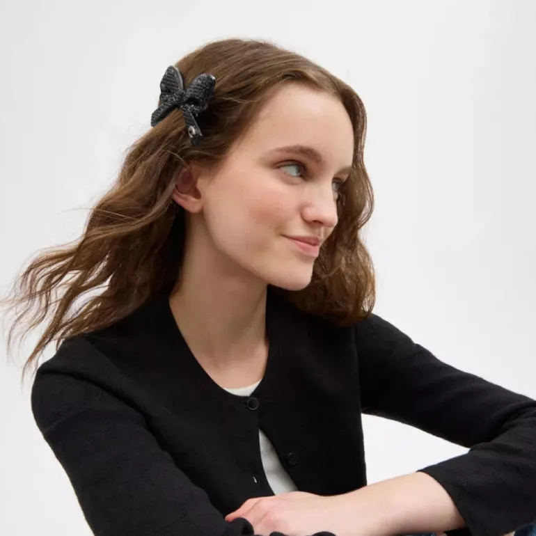 Diese funkelnde Schleifen-Haarspange mit farblich passenden Pavé-Kristallen ist der perfekte letzte Schliff für jeden Look. Dieses niedliche Accessoire fürs Haar mit unserer von Kristallen umgebenen Signature sorgt für einen Hauch von Tradition.