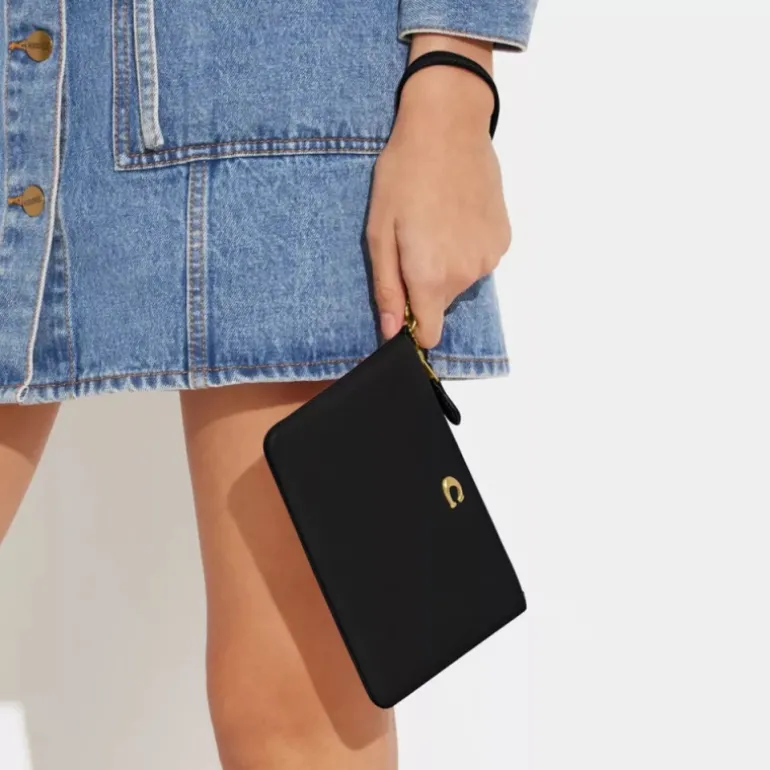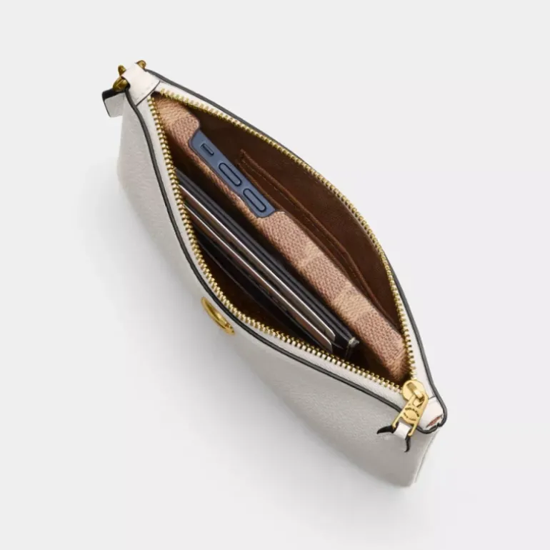 Diese Tasche aus poliertem strukturiertem Leder mit unseren Signature-Metalldetails bietet ausreichend Platz für Karten, Bargeld und ein Smartphone. Es kann am Handgelenk oder im Innern einer größeren Coach Tasche befestigt werden.