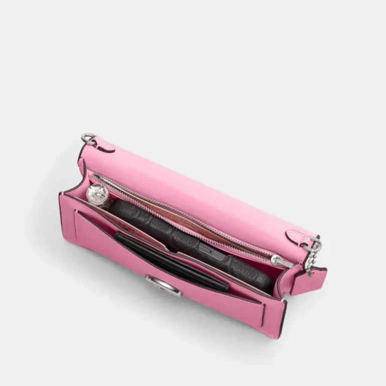 Unsere formfeste Tabby Clutch besteht aus poliertem strukturiertem Leder und ist eine moderne Neuinterpretation eines Coach Designs aus den 70er Jahren. Die mit unseren farblich abgestimmten, lederbezogenen Signature-Metalldetails ausgestattete Tasche verfügt über drei Fächer, ein sicheres Innenfach mit Reißverschluss und ein Außenfach für einfachen Zugriff auf Notwendigkeiten. Die vielseitige Tasche kann als Clutch oder mit dem eleganten Kettenriemen als Umhängetasche getragen werden und ist damit die perfekte Wahl für elegante und legere Looks.