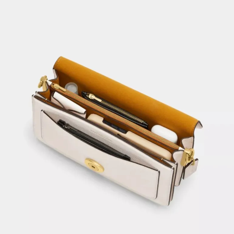 Unsere strukturierte Tabby Schultertasche ist aus poliertem, strukturiertem Leder gefertigt und orientiert sich an einem Coach Design aus den 70er-Jahren. Die kompakte 26 wird mit zwei abnehmbaren Tragegurten geliefert und kann deshalb in der Hand, als kurze Schultertasche oder als Umhängetasche getragen werden. Unsere charakteristischen Metalldetails verleihen dem Design einen kultigen Touch.