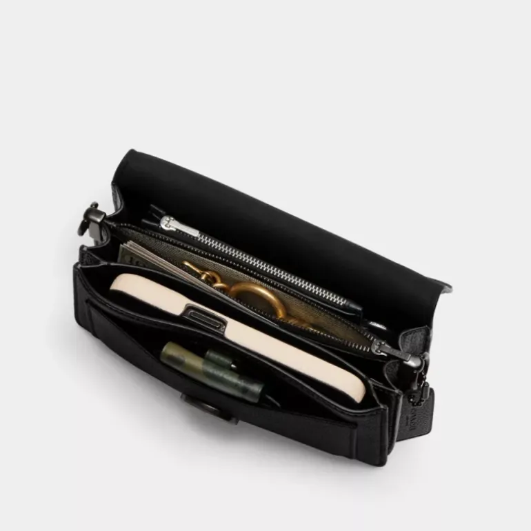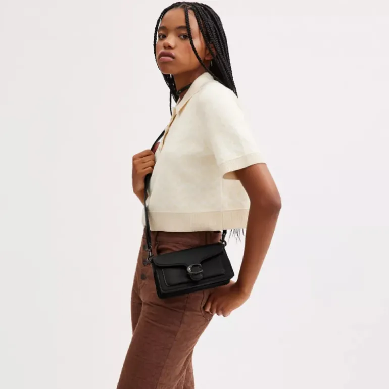 Unsere strukturierte Tabby Schultertasche ist aus poliertem, strukturiertem Leder gefertigt und orientiert sich an einem Coach Design aus den 70er-Jahren. Die zierliche 20 ist kleiner als die 26 und mit zwei abnehmbaren Riemen ausgestattet. Sie kann in der Hand, als kurze Schultertasche oder als Umhängetasche getragen werden. Für einen ikonischen Look ist sie mit unseren Signature-Metalldetails abgerundet.