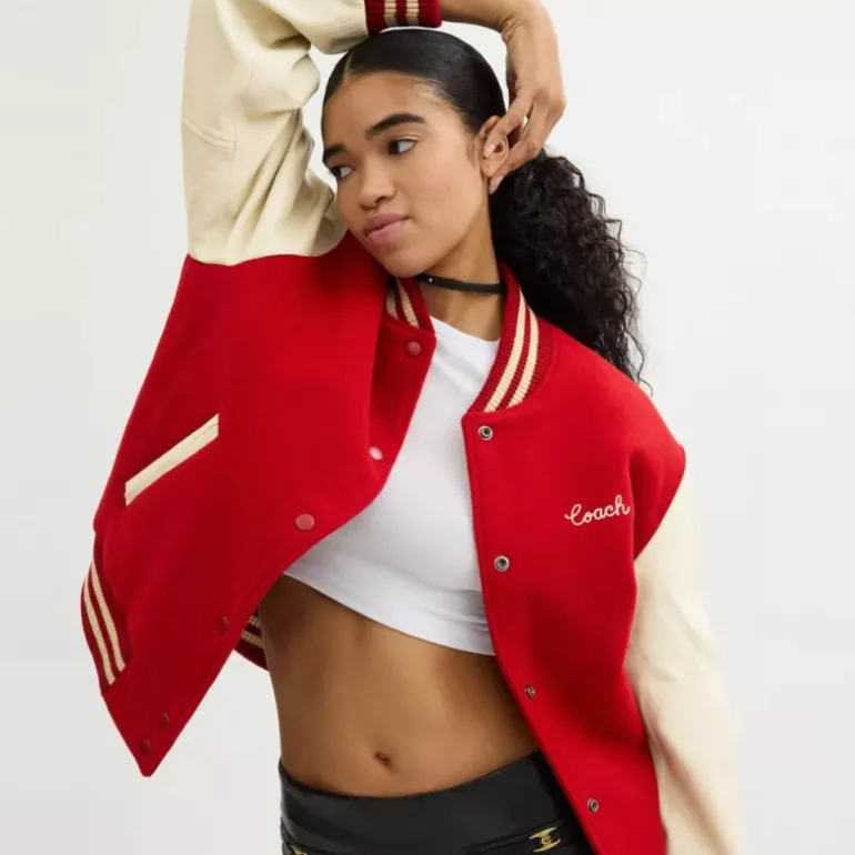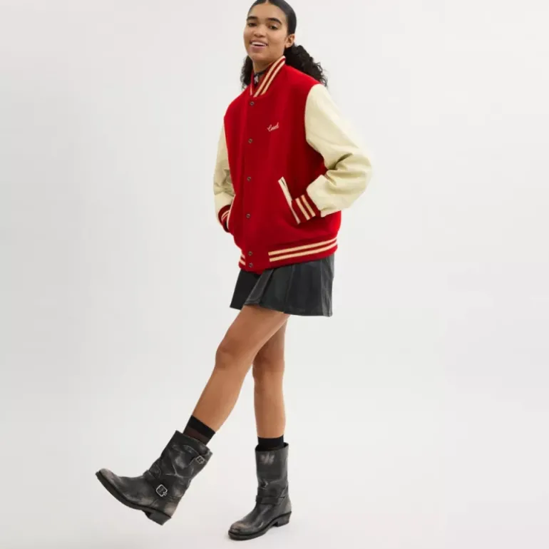 Die Varsity-Jacke ist ein legendäres Coach-Design und steht für Teamgeist und typisch amerikanische Coolness. Sie ist aus einer Mischung aus recycelter Wolle und recyceltem Polyester gefertigt und mit Ärmeln aus glattem Leder, Leistentaschen, gerippten Abschlüssen mit Signature-Streifen und unserem gestickten Coach-Schriftzug versehen.