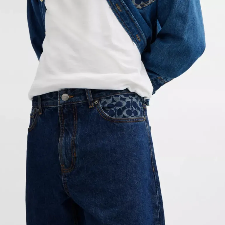 Unsere zulaufenden Jeans aus Denim mit dunkler Waschung in klassischer 5-Pocket-Silhouette lassen sich sowohl elegant als auch leger stylen. Als Hommage an unser Erbe ist die Hose mit Signature-Jacquard-Details und einem Coach-Lederaufnäher veredelt.