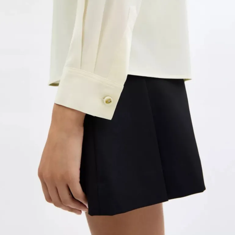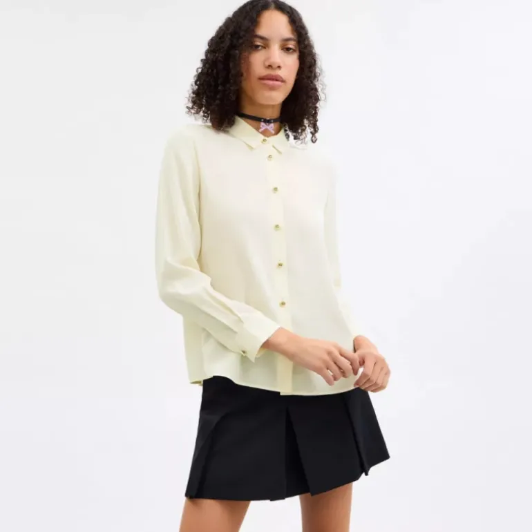 Diese klassisch geschnittene Seidenbluse mit traditionellem Spitzkragen gehört in jede Garderobe. Das luftige Modell verfügt über Signature-Knöpfe für einen dezenten Hauch von Tradition.