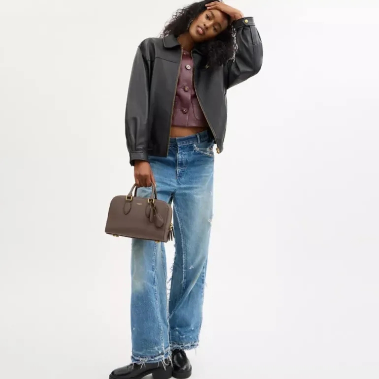 Superweiches Leder Einschubtasche innen Reißverschluss, Textilfutter Griffe mit 7,6 cm Tragelänge Abnehmbarer Riemen…
