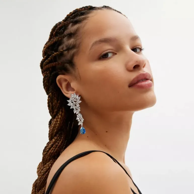 Dieser bezaubernde Kristallohrring mit abstrakten Winkeln und einem leuchtenden Tropfenanhänger setzt ein beeindruckendes Statement. Er ist mit einem Titanstift und einem runden Steckverschluss ausgestattet.