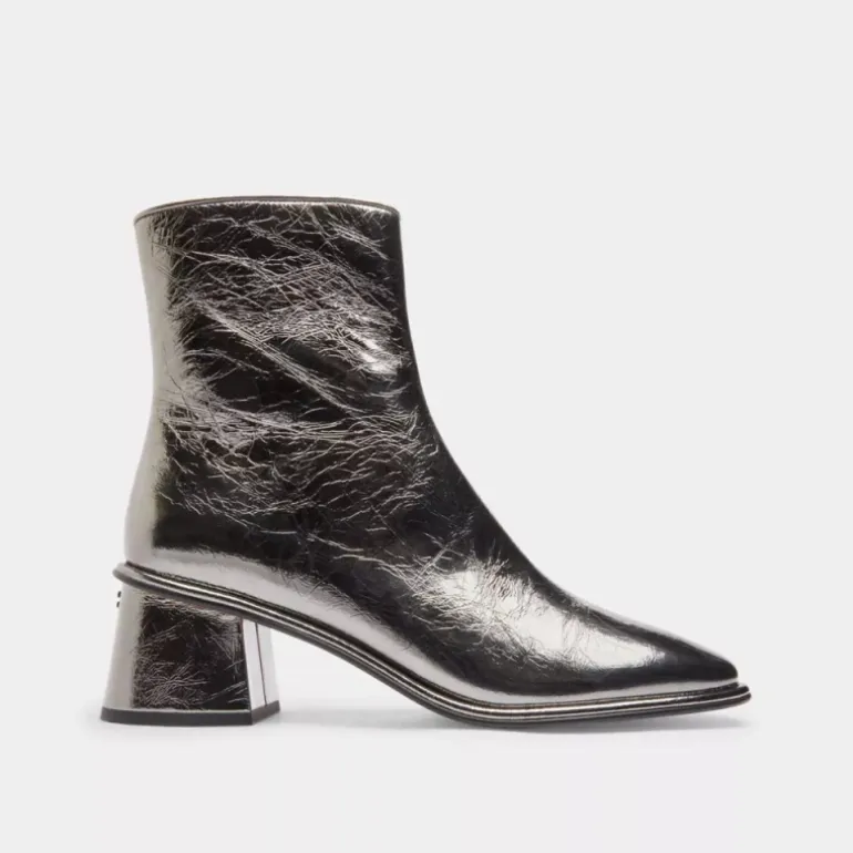Unsere Gigi Stiefelette mit bequemem Blockabsatz und polierten Metalldetails ist ein elegantes, modernes Modell für den Alltag. Sie wurde aus sanft strukturiertem, metallisch glänzendem Leder gefertigt. Den Abschluss bilden ein Reißverschluss an der Seite und ein gepolstertes Fußbett für zusätzlichen Komfort.