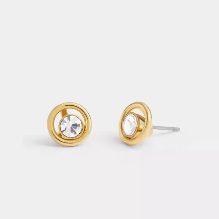 Diese zierlichen Ohrringe sind mit einem in der Mitte sitzenden, eingefassten Kristall verziert. Der Hintergrund der Ohrringe kann entfernt und die Kristallstecker allein getragen werden.