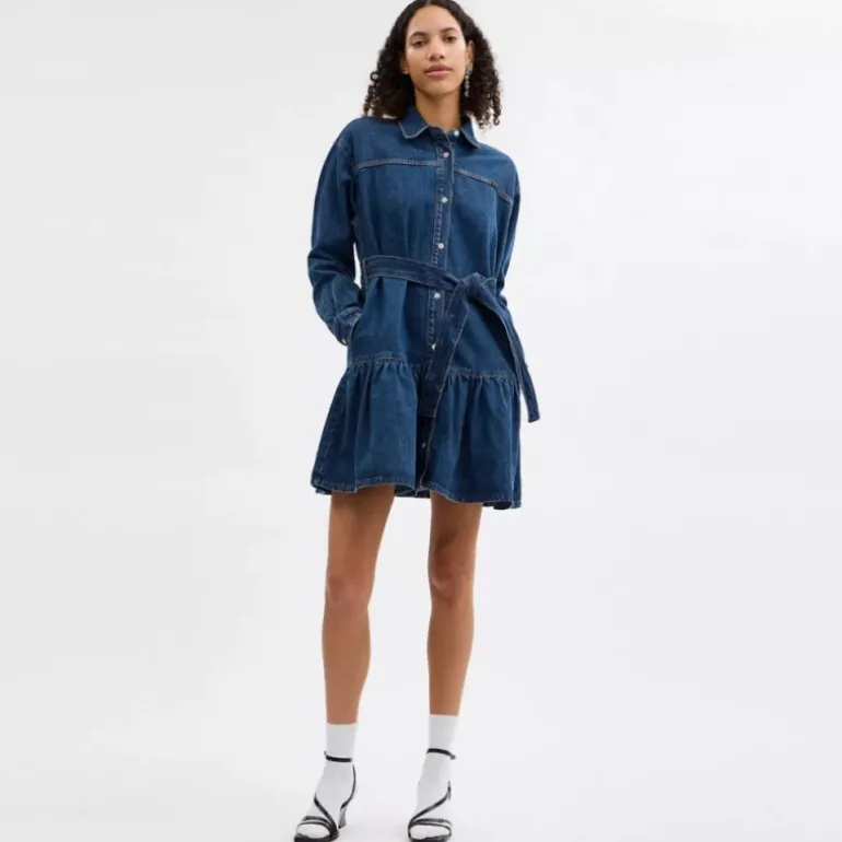 Dieses Hemdkleid aus Denim ist die feminine Variante eines eleganten Styles. Sein gerüschter Saum sorgt für spielerische Bewegung und Volumen. Abgerundet wird die Silhouette aus Baumwolle mit unserer Coach-Flagge für einen dezenten Hauch von Tradition.