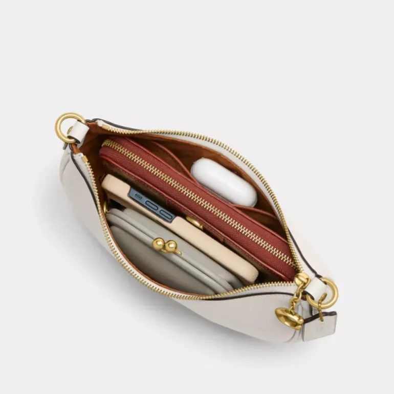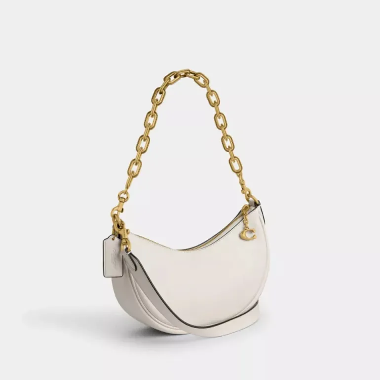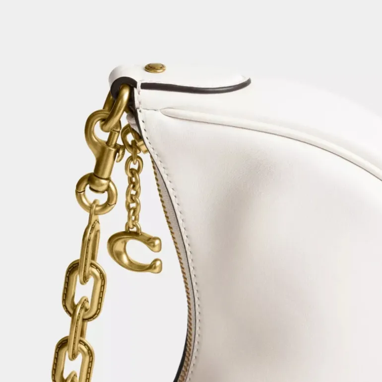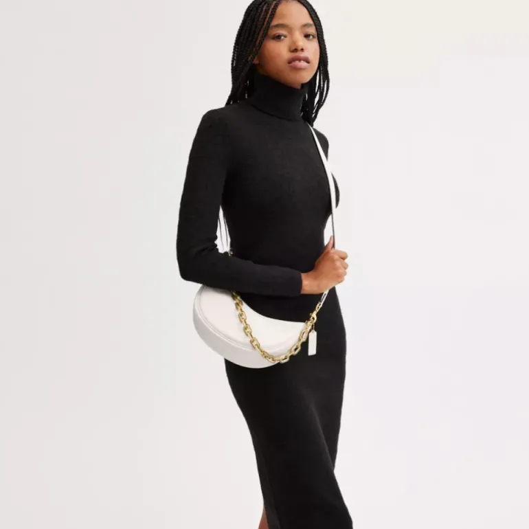 Unsere weiche und geräumige, halbmondförmige Mira ist ihrer Zeit voraus. Das vielseitige Modell aus superweichem Leder ist mit einem sicheren Reißverschluss mit C-Metalldetails ausgestattet. Es verfügt über einen massiven Schulterriemen aus Kettengliedern und einen abnehmbaren Lederriemen für das Tragen als Umhängetasche. (So viele Möglichkeiten!)