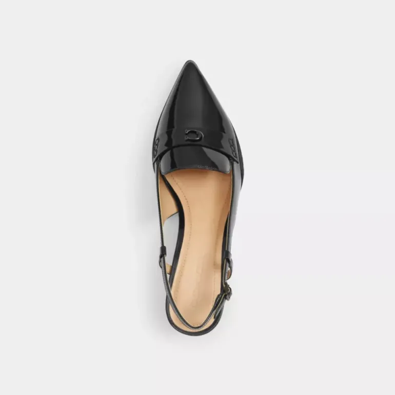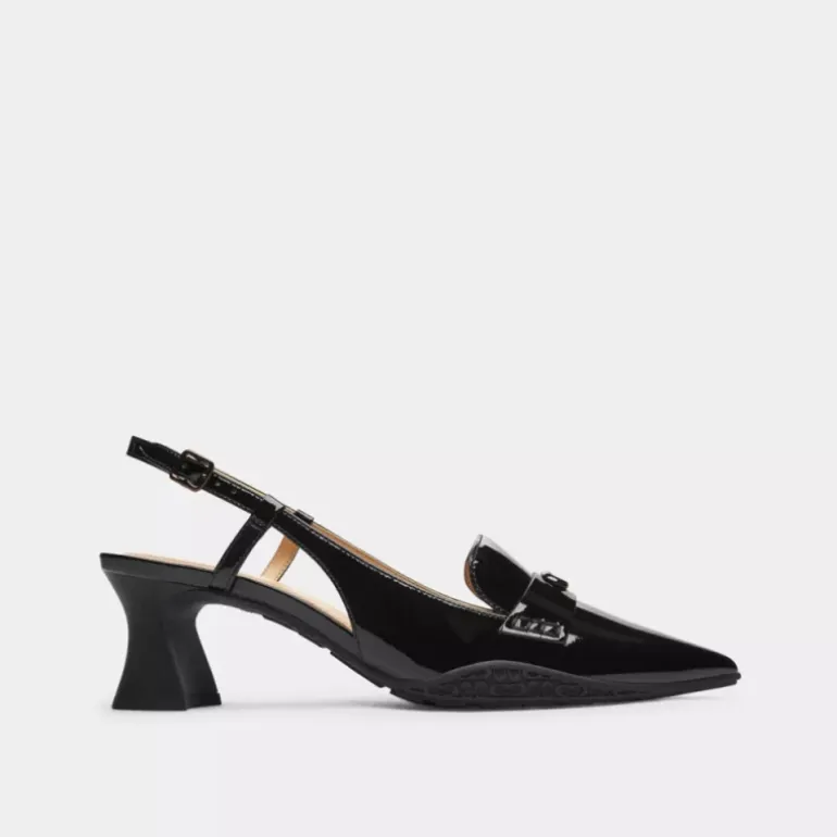 A sporty twist on a classic style, our high-shine patent leather Nikola slingback combines form and function with a comfortable padded footbed and a durable rubber outsole. A sleek day-to-night design, the pointed-toe silhouette is finished with a walkable sculpted heel and our tonal Signature sparkling with pavé accents.