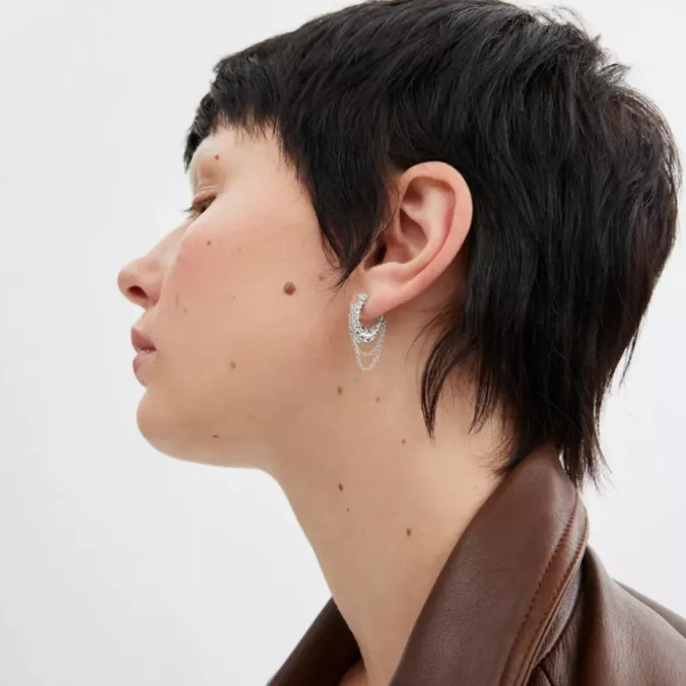 Unsere Signature schillert mit glitzernden Pavé-Kristallen auf diesen Huggie-Creolen mit einem zarten Kettenmotiv. Verleihen Sie mit dem minimalistischen Design, das mit einem Klickverschluss versehen ist, Ihrem Alltag einen Hauch von Glanz.