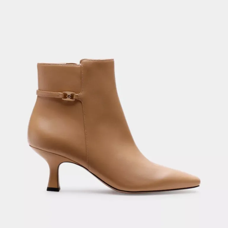 Der Rebecca Ankle Stiefelette mit unserer Heritage-C-Plakette begleitet Sie nahtlos von der Arbeit ins Wochenende. Die elegante Kitten-Heel-Silhouette ist aus Glattleder gefertigt und mit einem seitlichen Reißverschluss versehen.