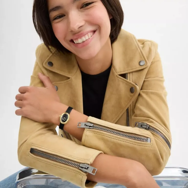Die Sammy im modernen, minimalistischen Design ist ein eleganter Zeitmesser für jeden Tag. Diese goldfarbene Uhr mit Lederarmband verfügt über ein lackiertes Zifferblatt mit polierten, goldfarbenen Markierungen.
