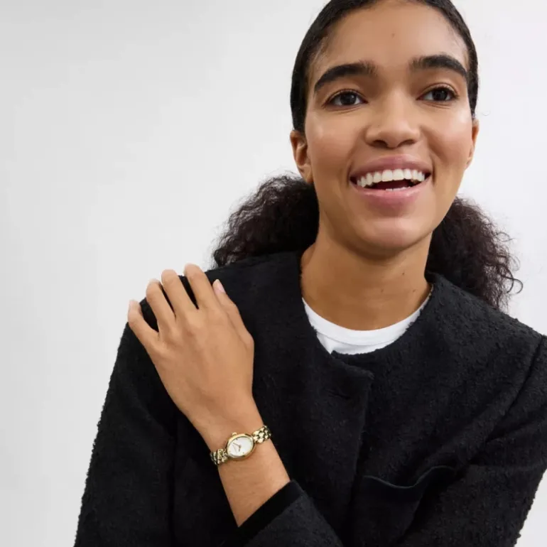 Die Sammy im modernen, minimalistischen Design ist ein eleganter Zeitmesser für jeden Tag. Diese edle, goldfarbene Armbanduhr verfügt über unser Signature-Zifferblatt mit polierten, goldfarbenen Markierungen.