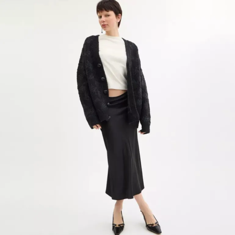 69 % Wolle, 17 % Alpaka, 14 % Polyamid Rippstrick: 65 % Wolle, 25 % Alpaka, 9 % Polyamid, 1 % Elasthan Knopfverschluss Länge: 71,10 cm Trockenreinigung Das Model Steven ist 1,88 m groß und trägt Größe M Das Model Grace ist 1,78 m groß, hat einen Brustumfang von 79 cm, einen Taillenumfang von 61 cm und einen Hüftumfang von 89 cm und trägt Größe S