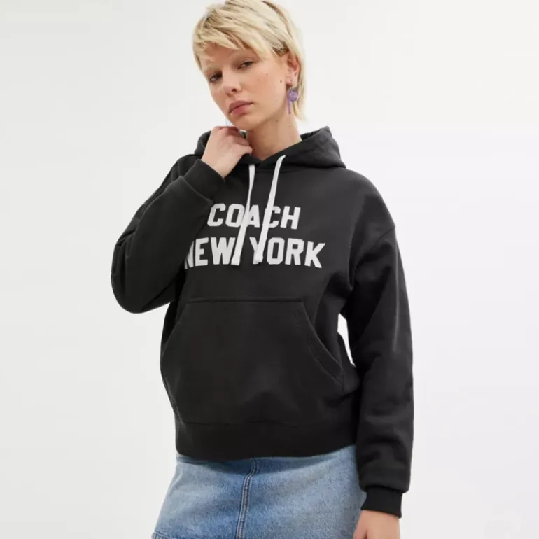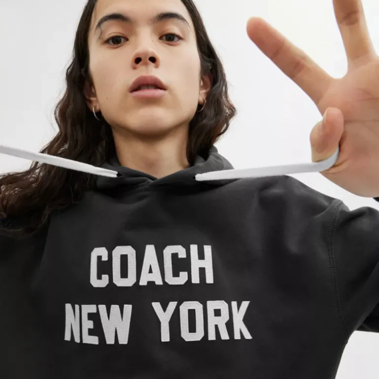 Verleihen Sie Ihrer Garderobe mit diesem klassisch geschnittenen Baumwoll-Sweatshirt einen Hauch von Tradition. Es ist mit unserer „Coach New York“-Grafik verziert und besitzt eine Kapuze mit Zugband und eine Kängurutasche vorn.