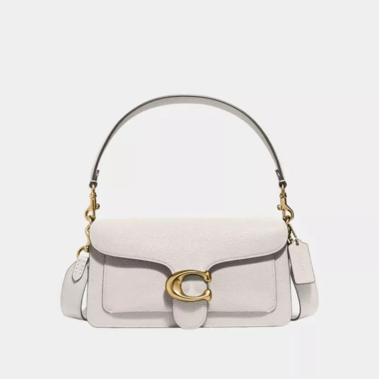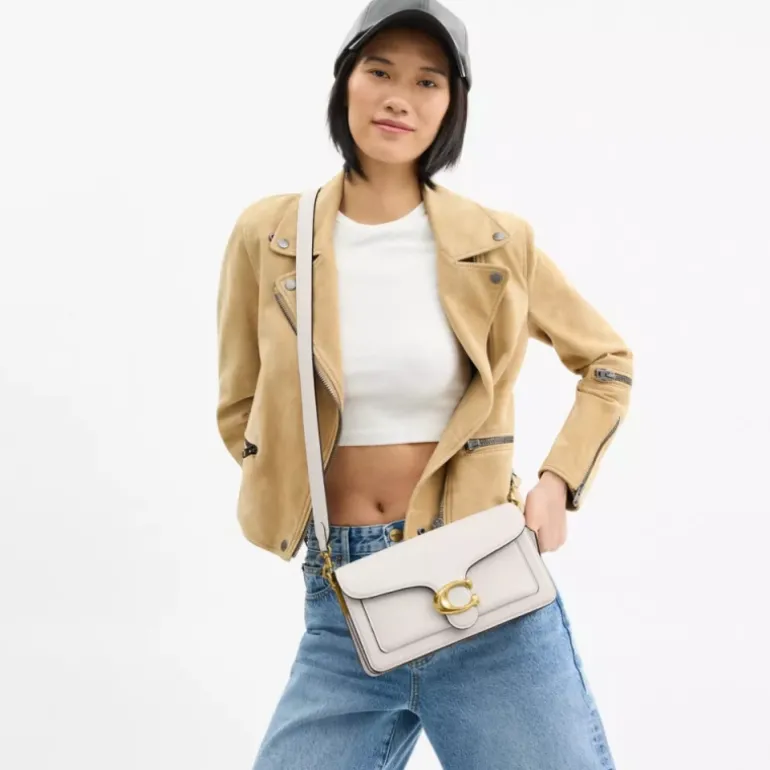 Unsere strukturierte Tabby Schultertasche ist aus poliertem, strukturiertem Leder gefertigt und orientiert sich an einem Coach Design aus den 70er-Jahren. Die kompakte 26 wird mit zwei abnehmbaren Tragegurten geliefert und kann deshalb in der Hand, als kurze Schultertasche oder als Umhängetasche getragen werden. Unsere charakteristischen Metalldetails verleihen dem Design einen kultigen Touch.