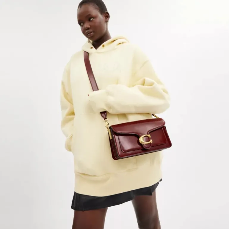 Unsere strukturierte Tabby Schultertasche ist aus üppigem, glattem Leder gefertigt und orientiert sich an einem Coach-Design aus den 1970er-Jahren. Die kompakte 26 verfügt über zwei abnehmbare Riemen und kann in der Hand, als kurze Schultertasche oder als Umhängetasche getragen werden. Unsere Signature-Metalldetails mit farblich stimmigem Lederbezug verleihen dem Design einen kultigen Touch.