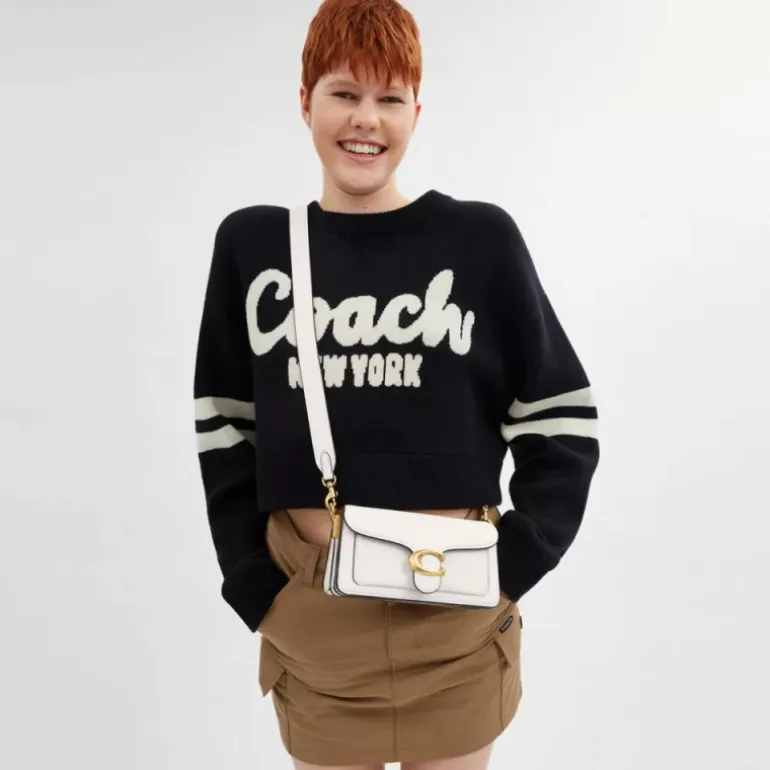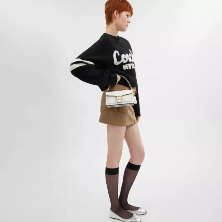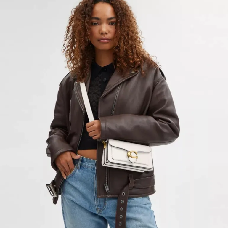 Unsere strukturierte Tabby Schultertasche ist aus poliertem, strukturiertem Leder gefertigt und orientiert sich an einem Coach Design aus den 70er-Jahren. Die zierliche 20 ist kleiner als die 26 und mit zwei abnehmbaren Riemen ausgestattet. Sie kann in der Hand, als kurze Schultertasche oder als Umhängetasche getragen werden. Für einen ikonischen Look ist sie mit unseren Signature-Metalldetails abgerundet.