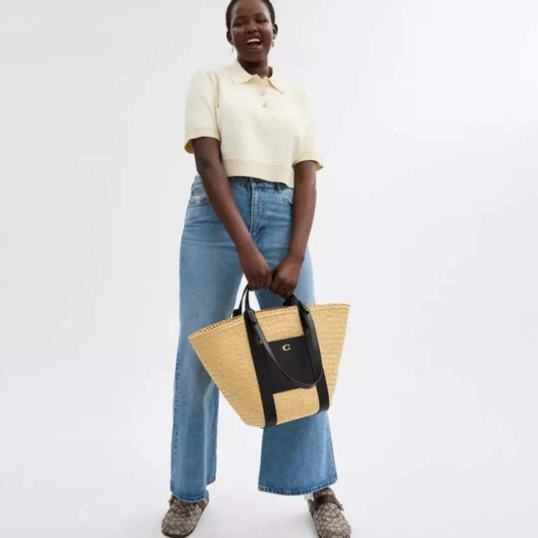 Unsere Pocket Tote ist eine sommerlich leichte Carryall aus strapazierfähigem Stroh und wird in einem über 4,5-stündigen Prozess gewebt. Das Modell ist mit einer Außentasche aus Leder ausgestattet, die mit unserer Signature-Hardware akzentuiert ist. Es bietet Platz für einen 13-Zoll-Laptop und ist mit einer Innentasche mit Reißverschluss zum Verstauen von wichtigen Dingen und mit Ledergriffen und Schulterriemen ausgestattet, die vielseitiges Tragen ermöglichen.