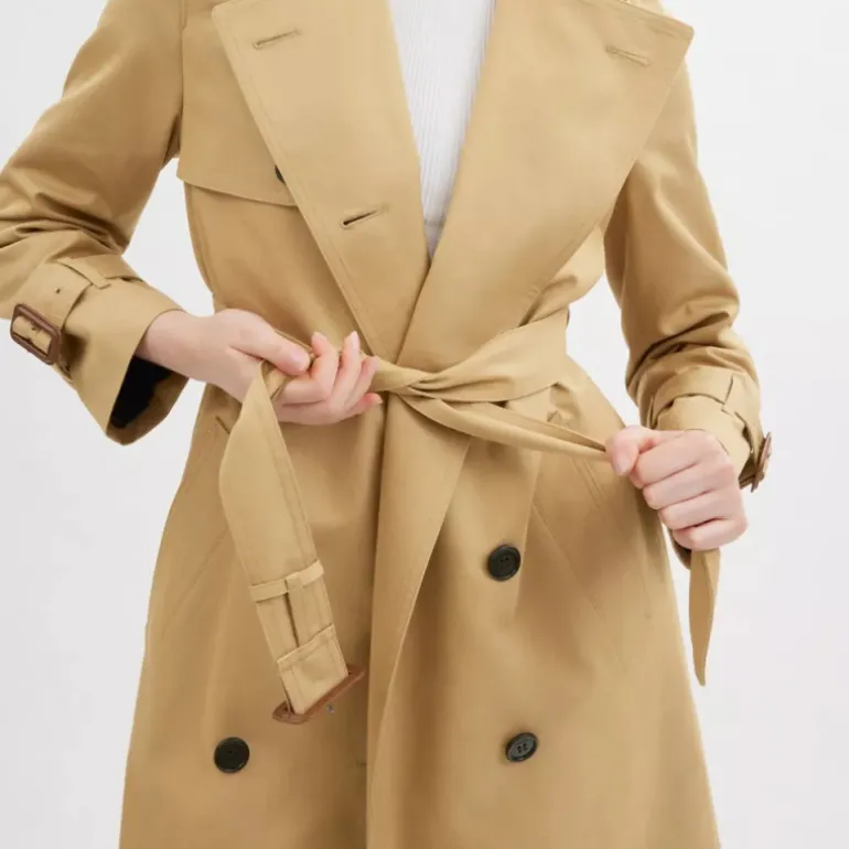 70 % Baumwolle, 30 % Polyester Korpusfutter: 58 % recyceltes Polyester, 42 % Viskose Ärmelfutter/Außenseite/Taschenfutter: 56 % Polyester, 44 % Viskose Lederdetails Knopfverschluss Einstecktaschen Verstellbarer Gürtel Länge: 105,4 cm Trockenreinigung Das Model ist 178 cm groß, hat einen Brustumfang von 79 cm, einen Taillenumfang von 61 cm, einen Hüftumfang von 89 cm und trägt Größe S.