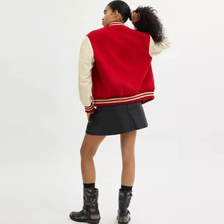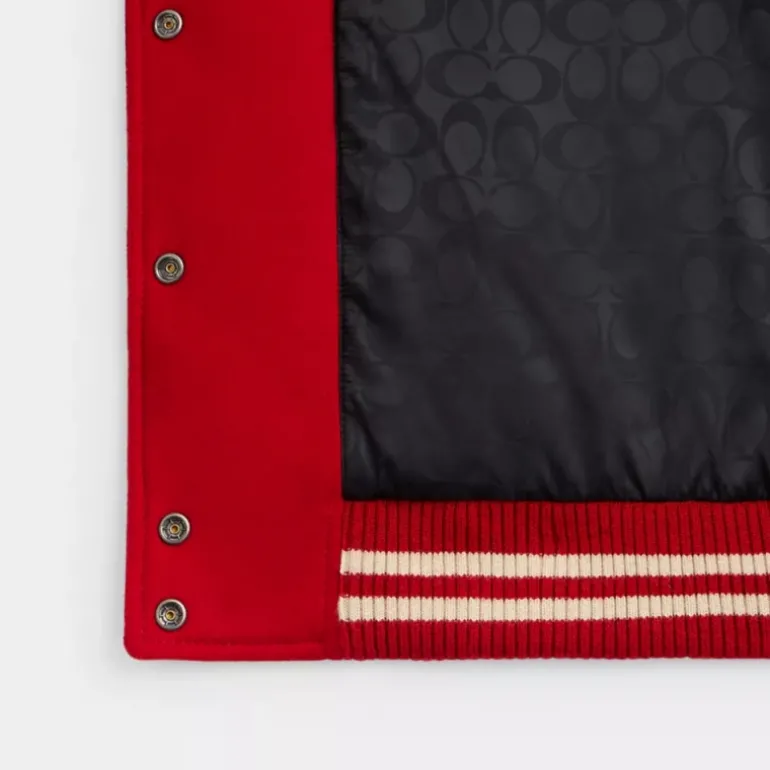 Die Varsity-Jacke ist ein legendäres Coach-Design und steht für Teamgeist und typisch amerikanische Coolness. Sie ist aus einer Mischung aus recycelter Wolle und recyceltem Polyester gefertigt und mit Ärmeln aus glattem Leder, Leistentaschen, gerippten Abschlüssen mit Signature-Streifen und unserem gestickten Coach-Schriftzug versehen.