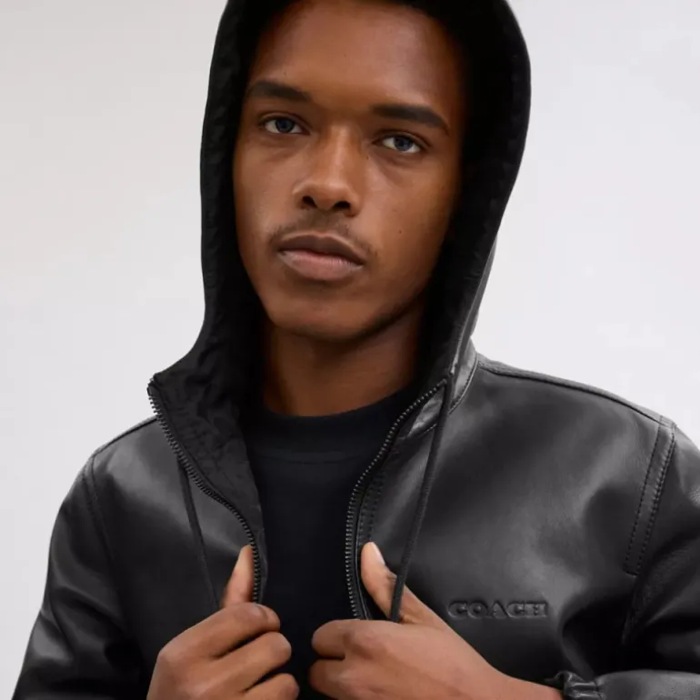 Entdecken Sie eine neue Variante des klassischen Kapuzenpullovers mit dieser wendbaren Jacke aus superweichem Leder auf einer Seite und leichtem Signature-Nylon auf der anderen. Die Jacke hat eine bequeme Passform mit Vorderreißverschluss, geräumige Reißverschlusstaschen und hält dank Gummizug am Handgelenk und Saum schön warm.