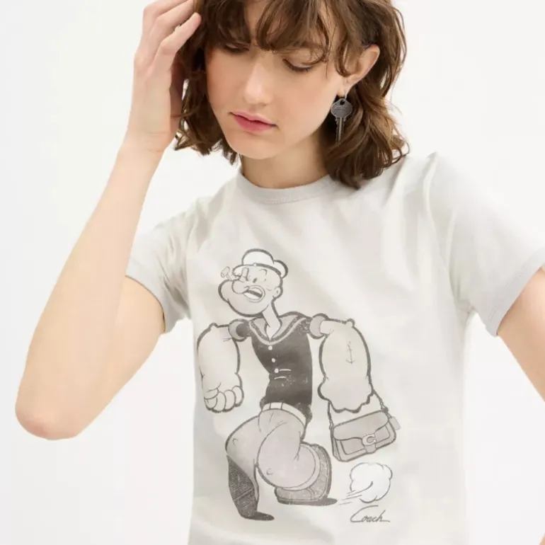 Coach feiert den beliebten Cartoon-Matrosen Popeye mit einer Sonderkollektion, die frühe Schwarz-Weiß-Illustrationen des spinatliebenden Seemanns mit dem Herz aus Gold zeigt. Immer bereit, den Tag zu retten (natürlich mit einer Tabby an der Hand) – so posiert der Held auf diesem klassisch geschnittenen Ringer-T-Shirt aus weicher Baumwolle mit kontrastierendem Besatz.
