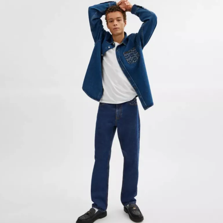 Unsere zulaufenden Jeans aus Denim mit dunkler Waschung in klassischer 5-Pocket-Silhouette lassen sich sowohl elegant als auch leger stylen. Als Hommage an unser Erbe ist die Hose mit Signature-Jacquard-Details und einem Coach-Lederaufnäher veredelt.